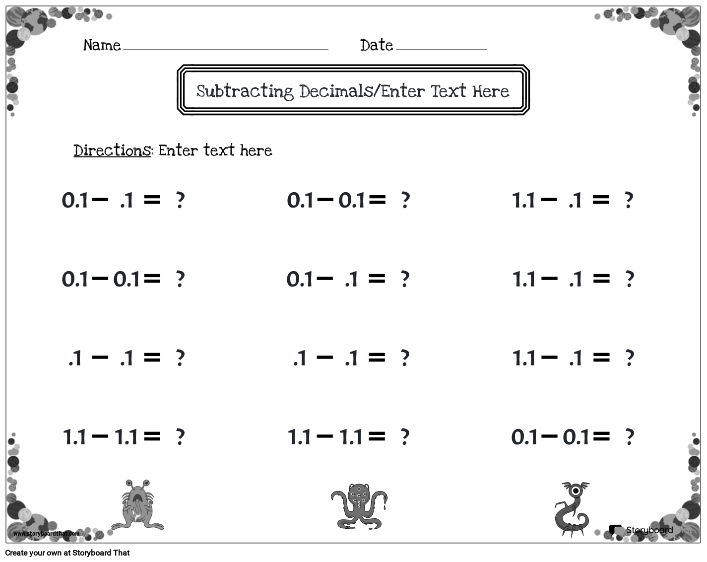 Subtracting Decimals/Enter Text Here