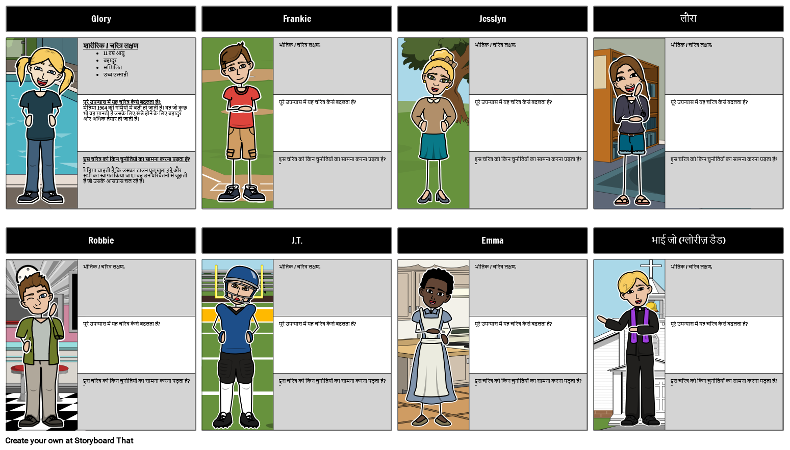 भौतिक / चरित्र लक्षण: पूरे उपन्यास में यह चरित्र कैसे बदलता है? इस चरित्र को किन चुनौतियों का सामना करना पड़ता है? ”