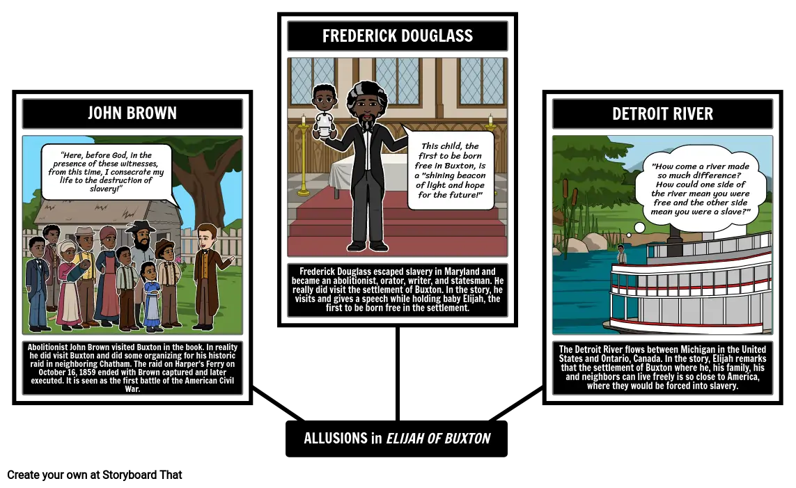 पुस्तक में मौजूद कई अलाउंस हैं, बुक्सटन के एलियाह, जिसने 1859 की समय अवधि में पाठक को डुबो दिया। पुस्तक से अलग वास्तविक लोगों, स्थानों, घटनाओं, वस्तुओं और साहित्य को पहचानें और एक मकड़ी के नक्शे में प्रत्येक का वर्णन और वर्णन करें!