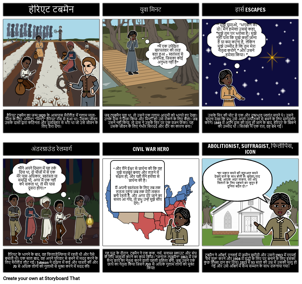 अमेरिका में गुलामी के समय के बारे में जानने के लिए कई लोगों और घटनाओं को उजागर करना है। यह स्टोरीबोर्ड हेरिएट ट्यूबमैन के जीवन और विरासत पर केंद्रित है। अपने लोगों के मूसा को फोन किया, उसने 70 से अधिक ग़ुलाम लोगों को आज़ादी दिलाई।