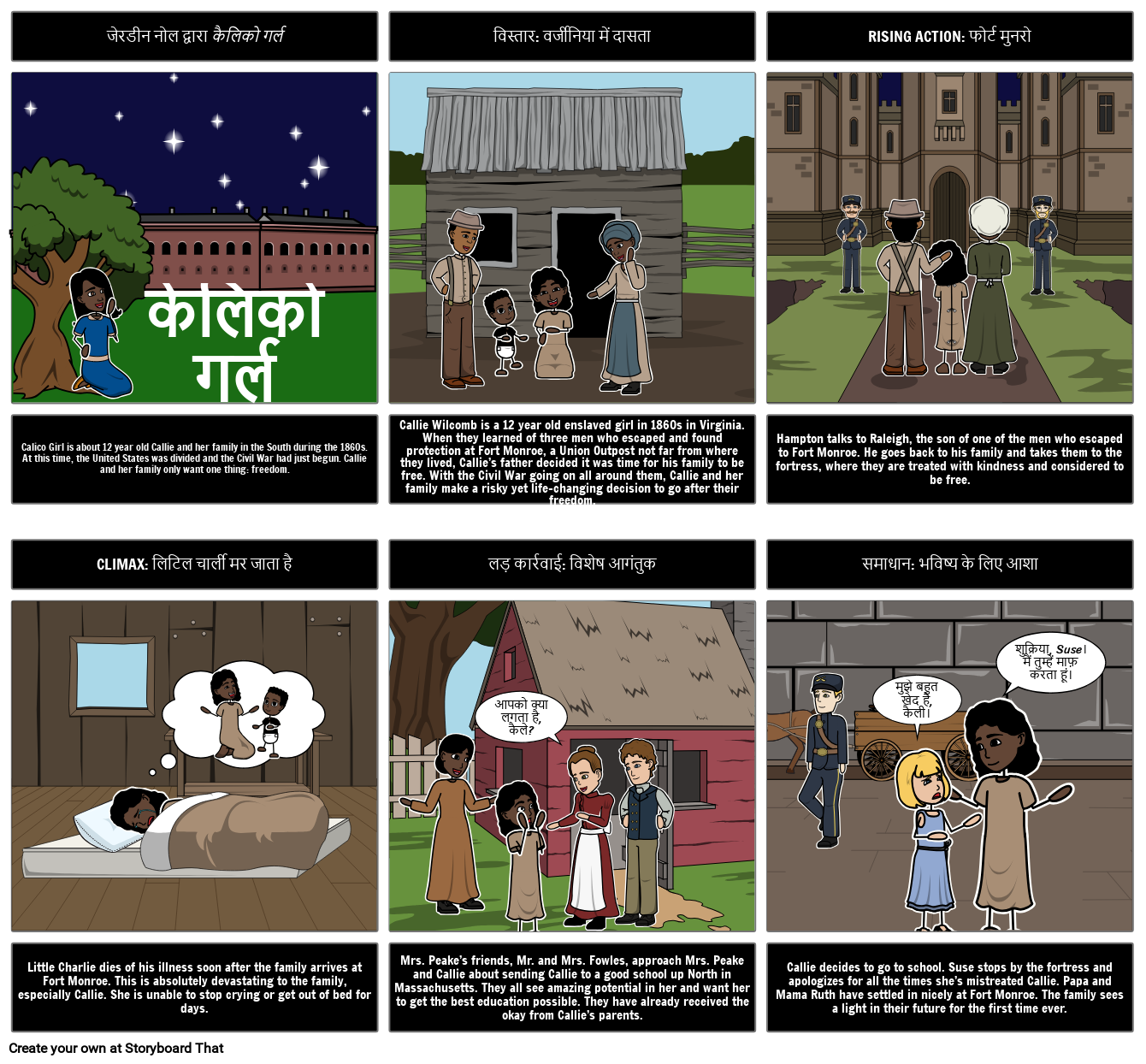 कैलिको गर्ल 1860 के दौरान दक्षिण में लगभग 12 साल की कैली और उसका परिवार है। इस समय, संयुक्त राज्य अमेरिका विभाजित हो गया था और गृह युद्ध शुरू हो गया था। कैली और उसका परिवार केवल एक चीज चाहते हैं: स्वतंत्रता।