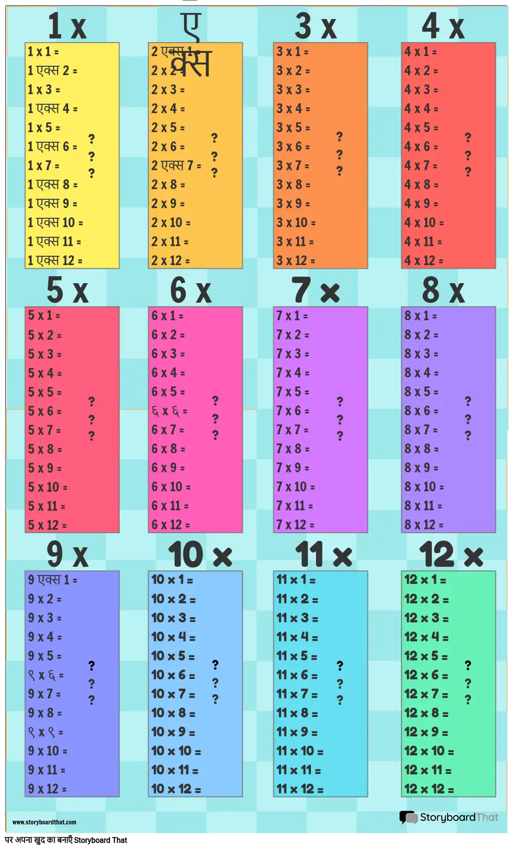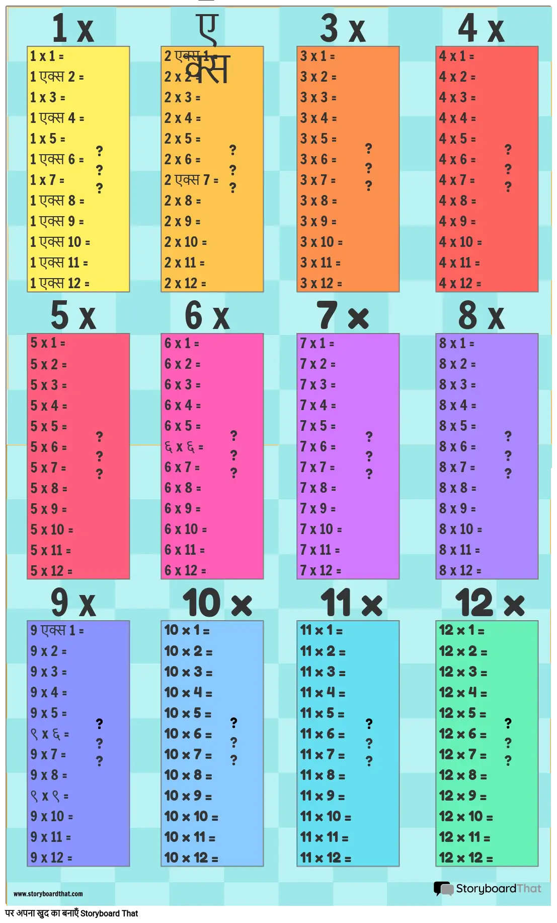 गुणन तालिका पोस्टर टेम्पलेट गणित के लिए बहुत अच्छे हैं!