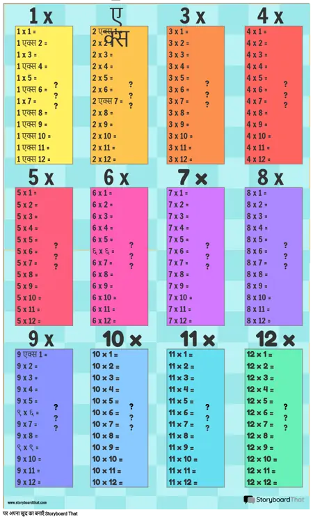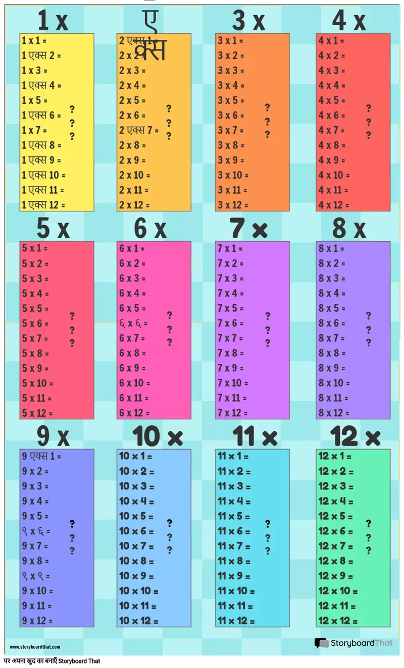 गुणन तालिका टेम्पलेट 1