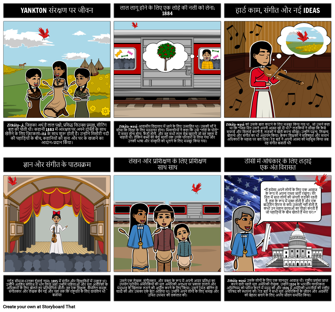 रेड बर्ड गाएं: द स्टोरी ऑफ ज़िटकला-सा, नेटिव अमेरिकन ऑथर, म्यूज़िशियन, एंड एक्टिविस्ट बाय क्यूएल पीयर्स और जीना कैपलाडी। यह ज़िटकला-सा, रेड बर्ड के बारे में एक सुंदर सचित्र जीवनी है, जिसे उनके अंग्रेजी नाम, गर्ट्रूड सिमंस (1876-1938) द्वारा भी जाना जाता है।