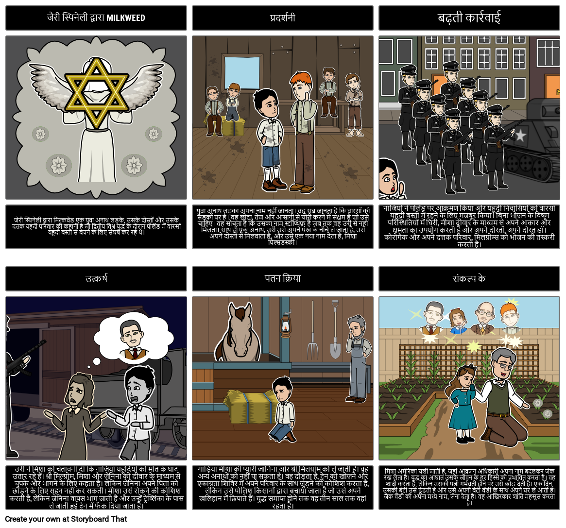 जेरी स्पिनेली द्वारा मिल्कवीड के लिए एक प्लॉट आरेख बनाएँ। एक्सपोज़र, राइजिंग एक्शन, क्लाइमैक्स, फ़ॉलिंग एक्शन और रिज़ॉल्यूशन शामिल करें। संशोधित करने के लिए, छात्र एक आरेख बना सकते हैं जिसमें परिचय, शुरुआत, मध्य और अंत शामिल हैं।