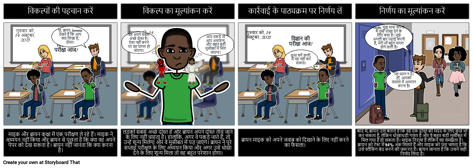 माइक और ब्रायन कक्षा में एक परीक्षण ले रहे हैं। माइक ने अध्ययन नहीं किया और ब्रायन से पूछता है कि क्या वह अपने पेपर को देख सकता है। ब्रायन नहीं जानता कि क्या करना है।