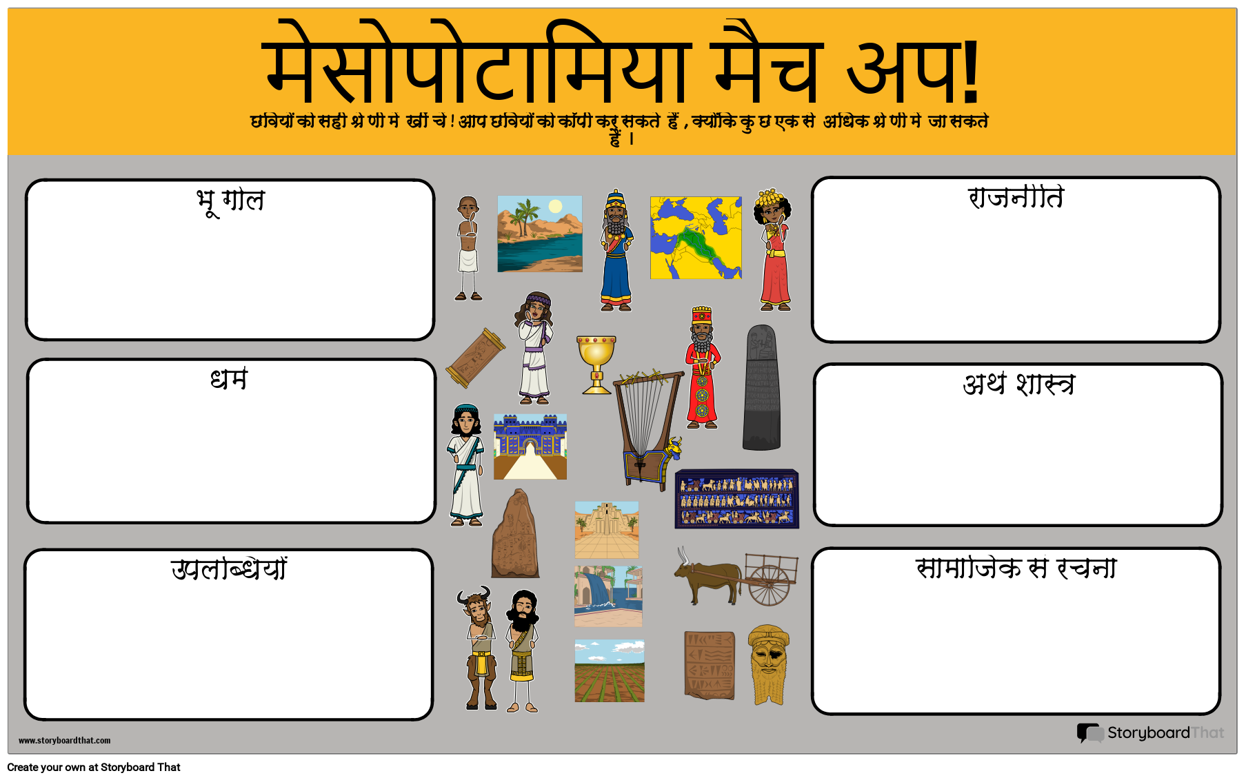 यह खोज खोज गतिविधि छात्रों के लिए एक पूर्वावलोकन के रूप में उपयोग की जा सकती है, जहां प्रत्येक छवि जहां हो सकती है, एक शिक्षित अनुमान लगाने के लिए। मेसोपोटामिया के बारे में छात्रों द्वारा अध्ययन किए जाने के बाद यह एक आकलन भी हो सकता है। इसके अतिरिक्त, यह GRAPES चार्ट गतिविधियों के साथ एक विभेदित गतिविधि के रूप में इस्तेमाल किया जा सकता है।