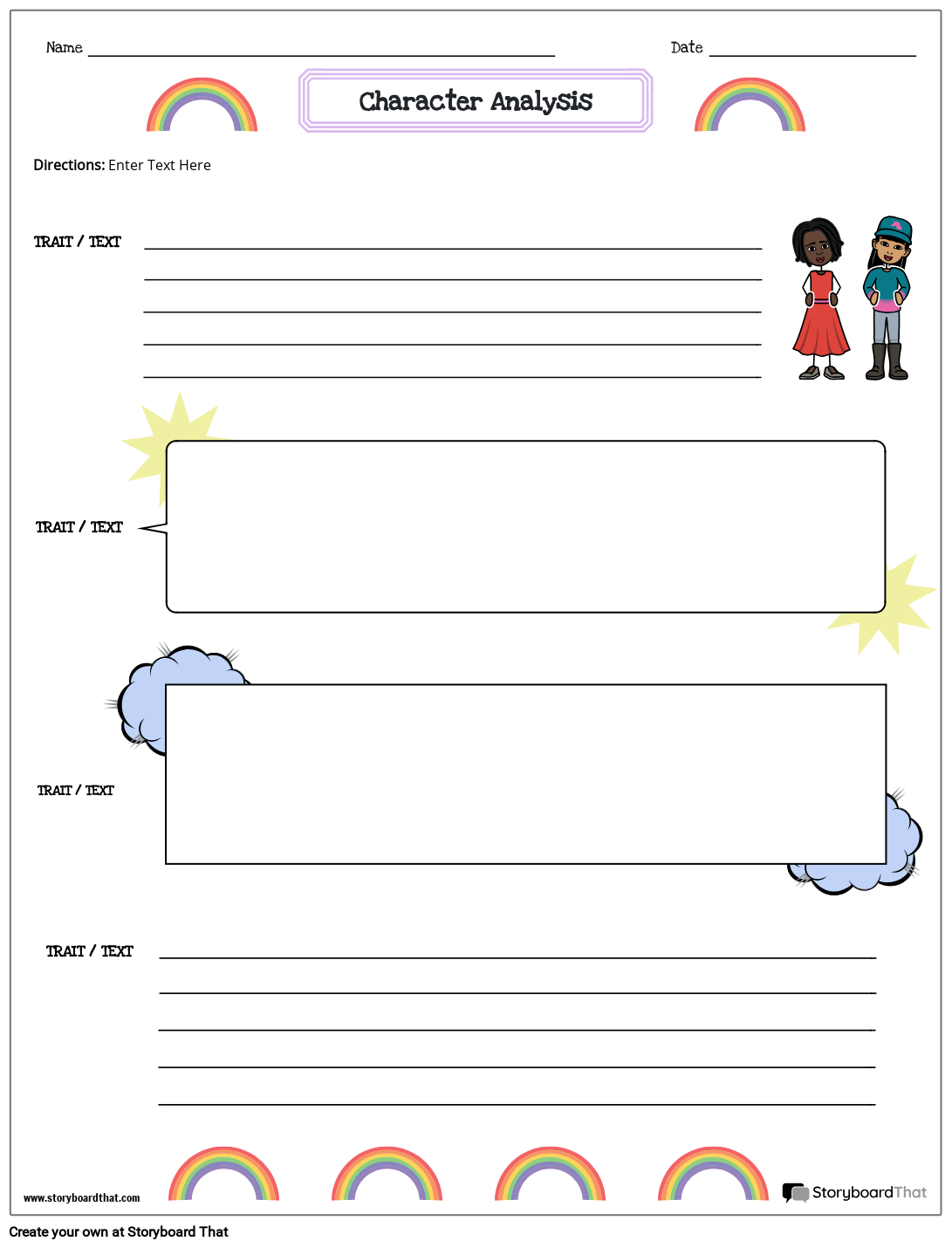 चरित्र विश्लेषण वर्कशीट टेम्पलेट | कस्टम चरित्र विश्लेषण वर्कशीट बनाएं!