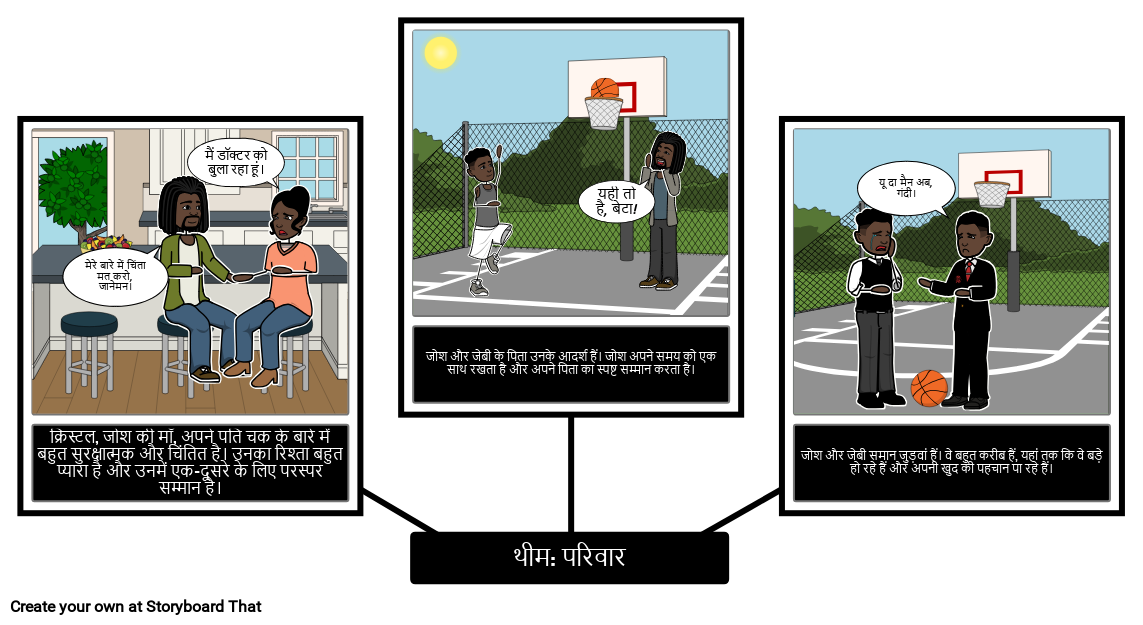 क्या छात्रों ने क्रॉसओवर में फैमिली की तरह थीम का उदाहरण देते हुए एक मकड़ी का नक्शा बनाया है