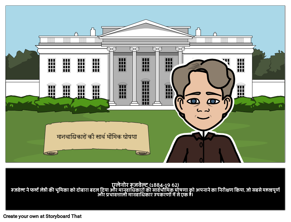 एलेनोर रूजवेल्ट (1884-19 62)रूजवेल्ट ने फर्स्ट लेडी की भूमिका को दोबारा बदल दिया और मानवाधिकारों की सार्वभौमिक घोषणा को अपनाने का निरीक्षण किया, जो सबसे महत्वपूर्ण और प्रभावशाली मानवाधिकार उपकरणों में से एक है।