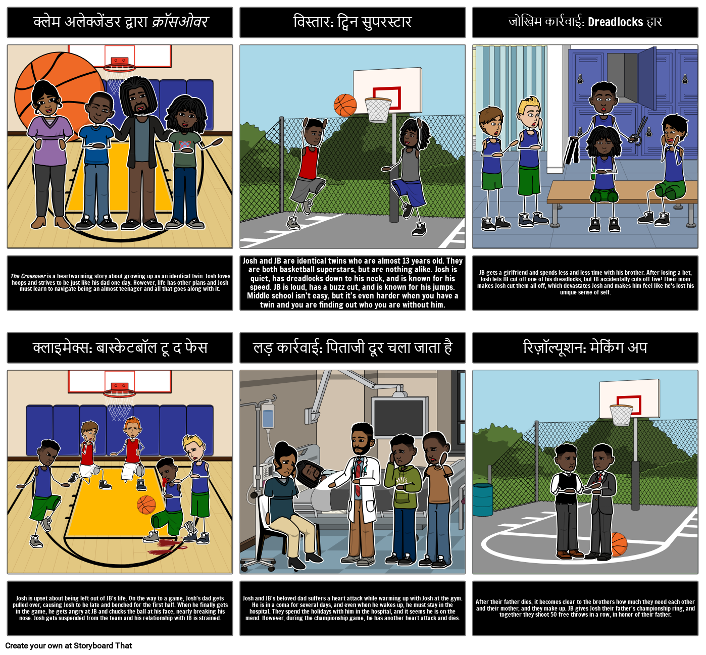 Josh and JB are identical twins who are almost 13 years old. They are both basketball superstars, but are nothing alike. Josh is quiet, has dreadlocks down to his neck, and is known for his speed. JB is loud, has a buzz cut, and is known for his jumps. Middle school isn't easy, but it's even harder when you have a twin and you are finding out who you are without him.