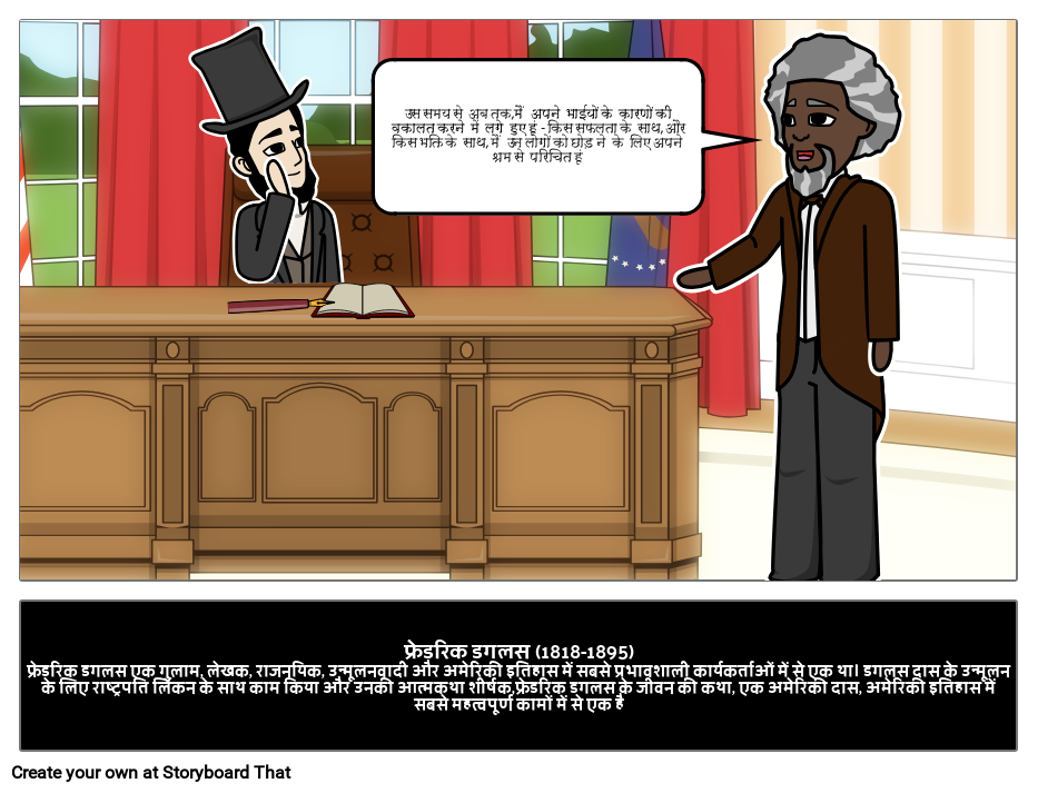 फ्रेडरिक डगलस (1818-1895)फ्रेडरिक डगलस एक गुलाम, लेखक, राजनयिक, उन्मूलनवादी और अमेरिकी इतिहास में सबसे प्रभावशाली कार्यकर्ताओं में से एक था। डगलस दास के उन्मूलन के लिए राष्ट्रपति लिंकन के साथ काम किया और उनकी आत्मकथा शीर्षक,फ्रेडरिक डगलस के जीवन की कथा, एक अमेरिकी दास, अमेरिकी इतिहास में सबसे महत्वपूर्ण कामों में से एक है