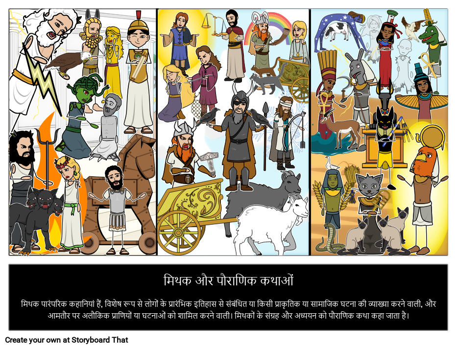मिथक और पौराणिक कथाओं मिथक पारंपरिक कहानियां हैं, विशेष रूप से लोगों के प्रारंभिक इतिहास से संबंधित या किसी प्राकृतिक या सामाजिक घटना की व्याख्या करने वाली, और आमतौर पर अलौकिक प्राणियों या घटनाओं को शामिल करने वाली। मिथकों के संग्रह और अध्ययन को पौराणिक कथा कहा जाता है।