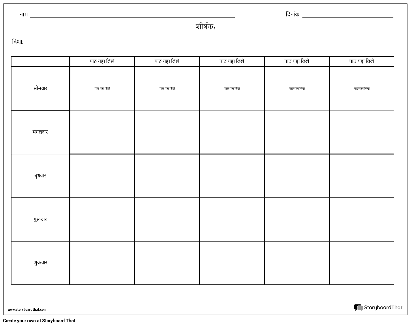 सप्ताह योजनाकार खाका - सप्ताह ग्रिड