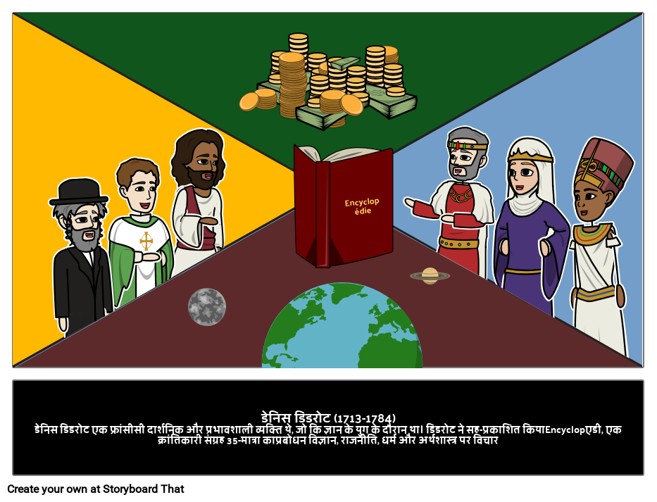 डेनिस डिडरोट (1713-1784)डेनिस डिडरोट एक फ्रांसीसी दार्शनिक और प्रभावशाली व्यक्ति थे, जो कि ज्ञान के युग के दौरान था। डिडरोट ने सह-प्रकाशित कियाEncyclopएडी, एक क्रांतिकारी संग्रह 35-मात्रा काप्रबोधन विज्ञान, राजनीति, धर्म और अर्थशास्त्र पर विचार