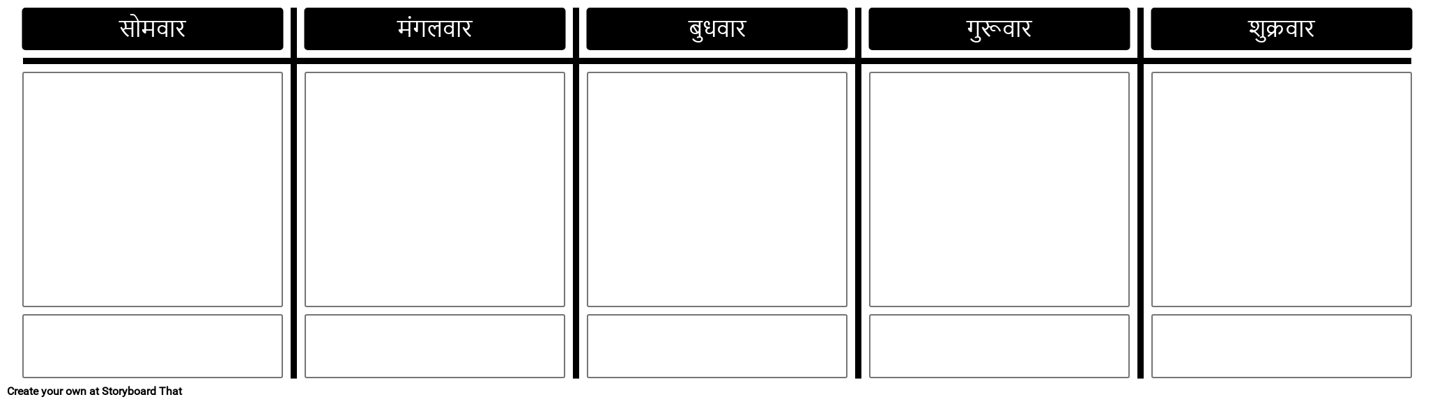 टी-चार्ट लेआउट का उपयोग करके सोमवार से शुक्रवार टेम्पलेट। एक पूरे सप्ताह के लिए दो और सेल जोड़ें!