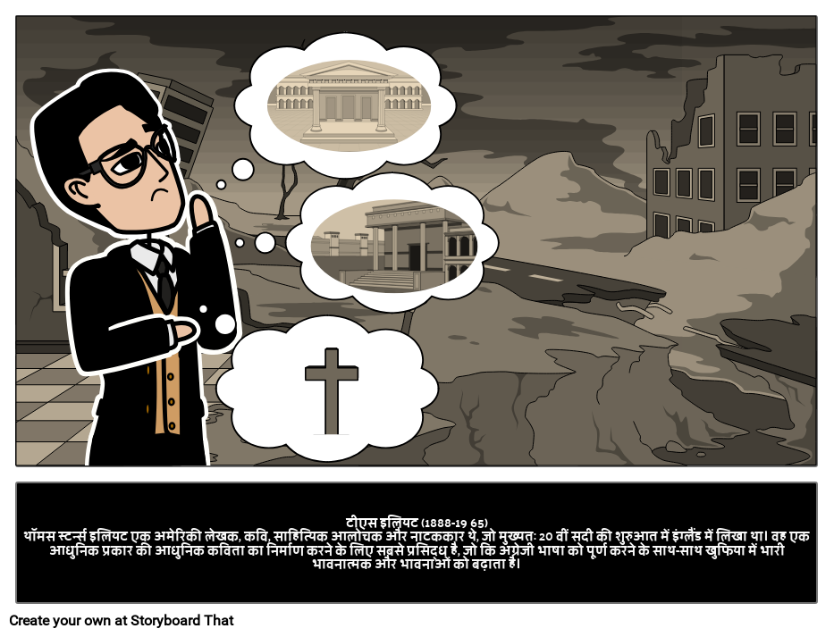 टीएस इलियट (1888-19 65)थॉमस स्टर्न्स इलियट एक अमेरिकी लेखक, कवि, साहित्यिक आलोचक और नाटककार थे, जो मुख्यतः 20 वीं सदी की शुरुआत में इंग्लैंड में लिखा था। वह एक आधुनिक प्रकार की आधुनिक कविता का निर्माण करने के लिए सबसे प्रसिद्ध है, जो कि अंग्रेजी भाषा को पूर्ण करने के साथ-साथ खुफिया में भारी भावनात्मक और भावनाओं को बढ़ाता है।