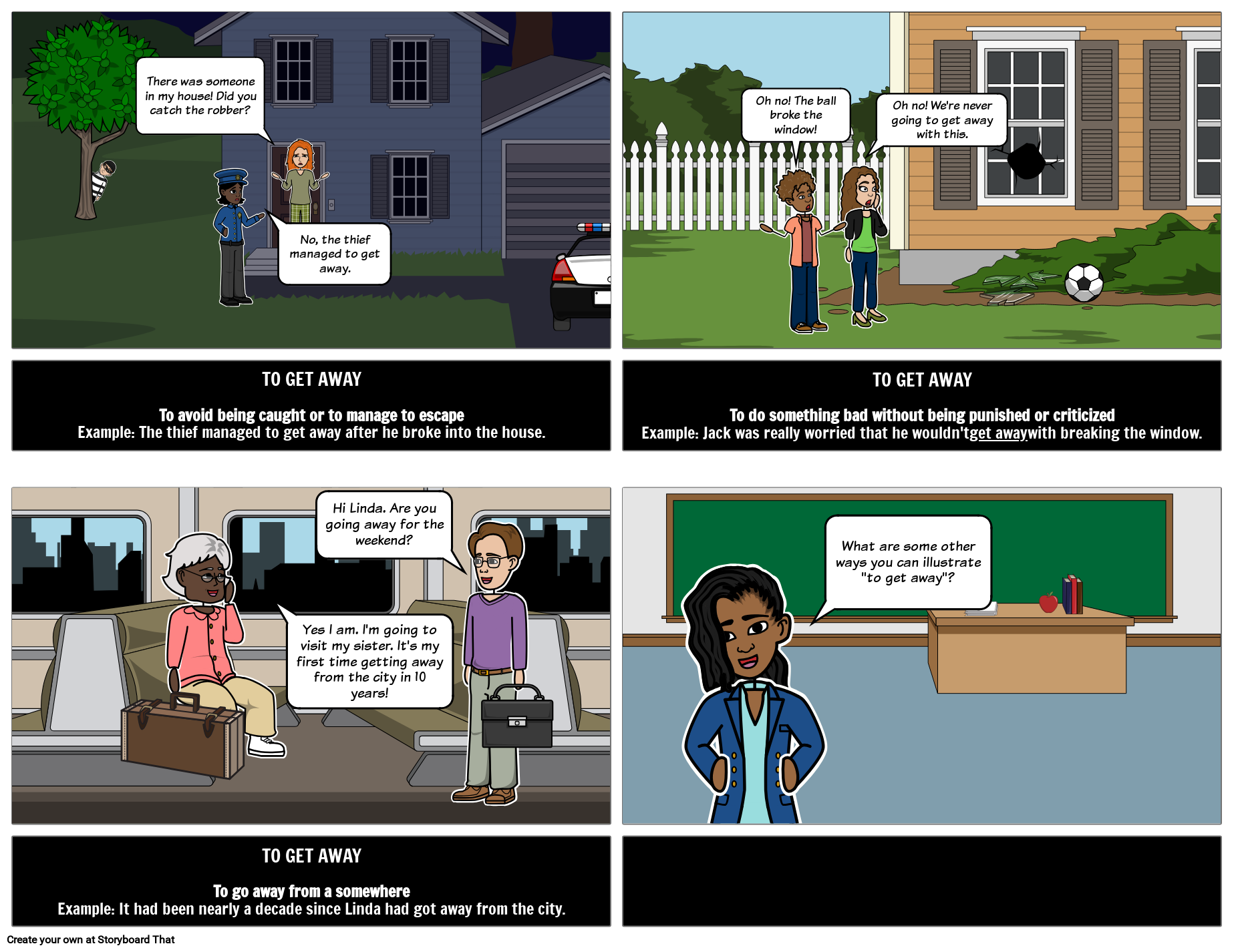 TO GET AWAYTo do something bad without being punished or criticizedExample: Jack was really worried that he wouldn'tget awaywith breaking the window.