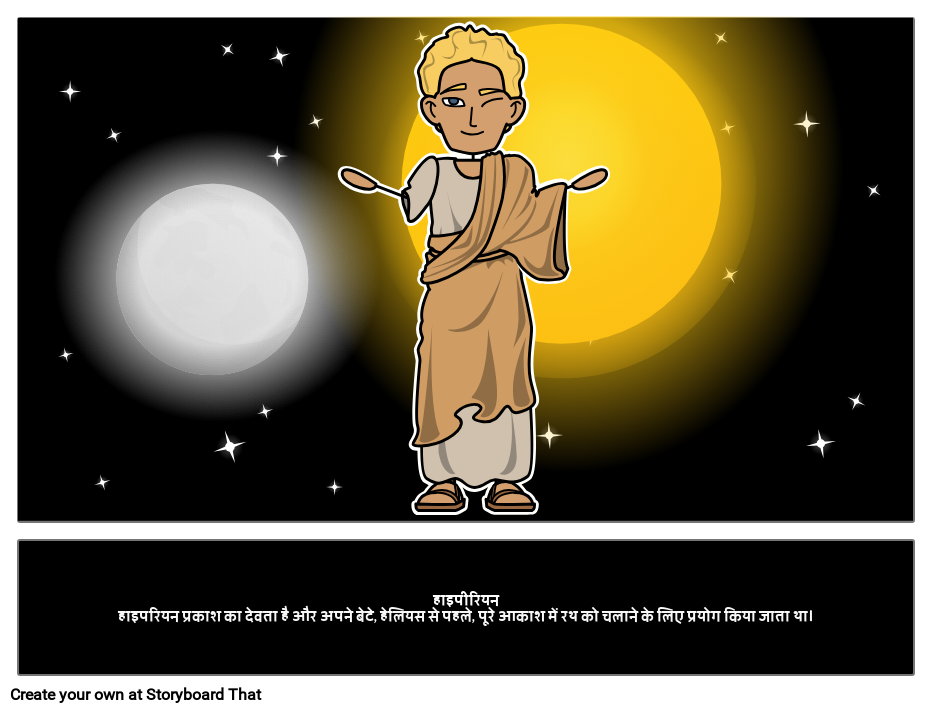 हाइपीरियनहाइपरियन प्रकाश का देवता है और अपने बेटे, हेलियस से पहले, पूरे आकाश में रथ को चलाने के लिए प्रयोग किया जाता था।