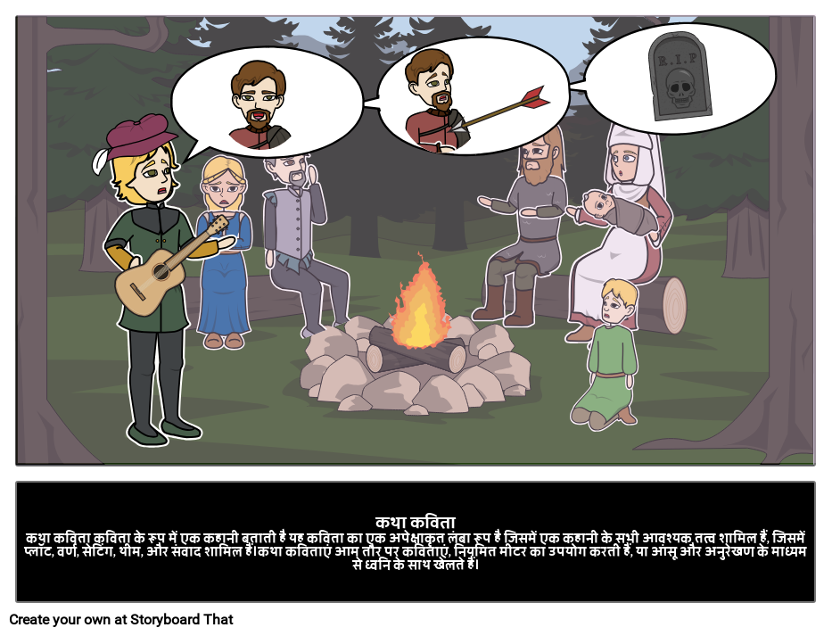 • कथा कविताकथा कविता कविता के रूप में एक कहानी बताती है यह कविता का एक अपेक्षाकृत लंबा रूप है जिसमें एक कहानी के सभी आवश्यक तत्व शामिल हैं, जिसमें प्लॉट, वर्ण, सेटिंग, थीम, और संवाद शामिल हैं।कथा कविताएं आम तौर पर कविताएं, नियमित मीटर का उपयोग करती हैं, या आंसू और अनुरेखण के माध्यम से ध्वनि के साथ खेलते हैं।