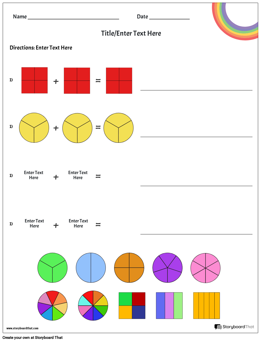 चित्रों के साथ भिन्न कार्यपत्रक: रंग थीम्ड