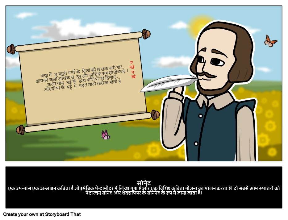 सोनेटएक उपन्यास एक 14-लाइन कविता है जो इमेबिक पेन्टामीटर में लिखा गया है और एक विशिष्ट कविता योजना का पालन करता है। दो सबसे आम रूपांतरों को पेट्रारचन सोनेट और शेक्सपियर के सोननेट के रूप में जाना जाता है।