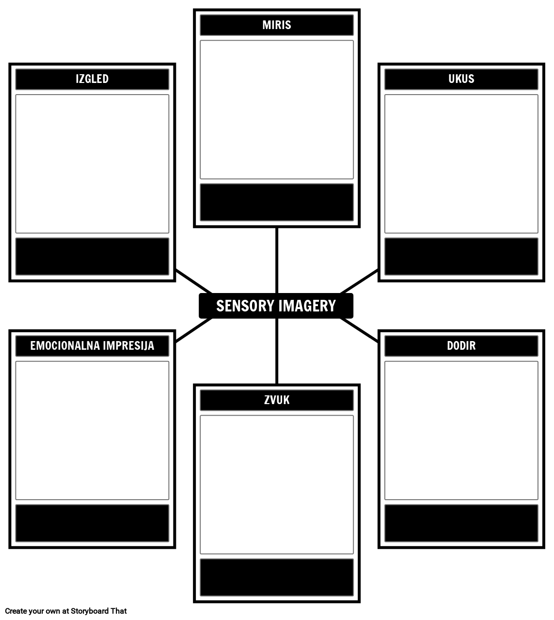 Predložak senzornih slika - koristite ovaj predložak u Storyboard That biste prikazali osjetilne slike iz memorije ili pjesme.