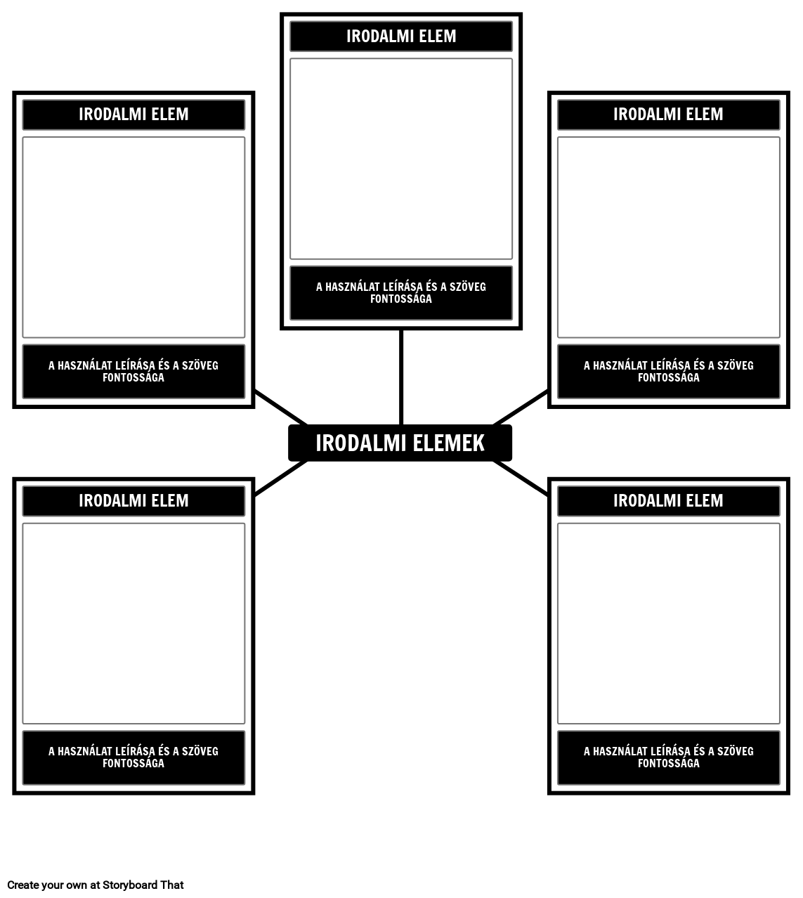 Irodalmi elem Spider térképsablon - Azonosítja és ábrázolja az irodalmi elemeket a szövegből. Mellékelje annak jelentőségét.