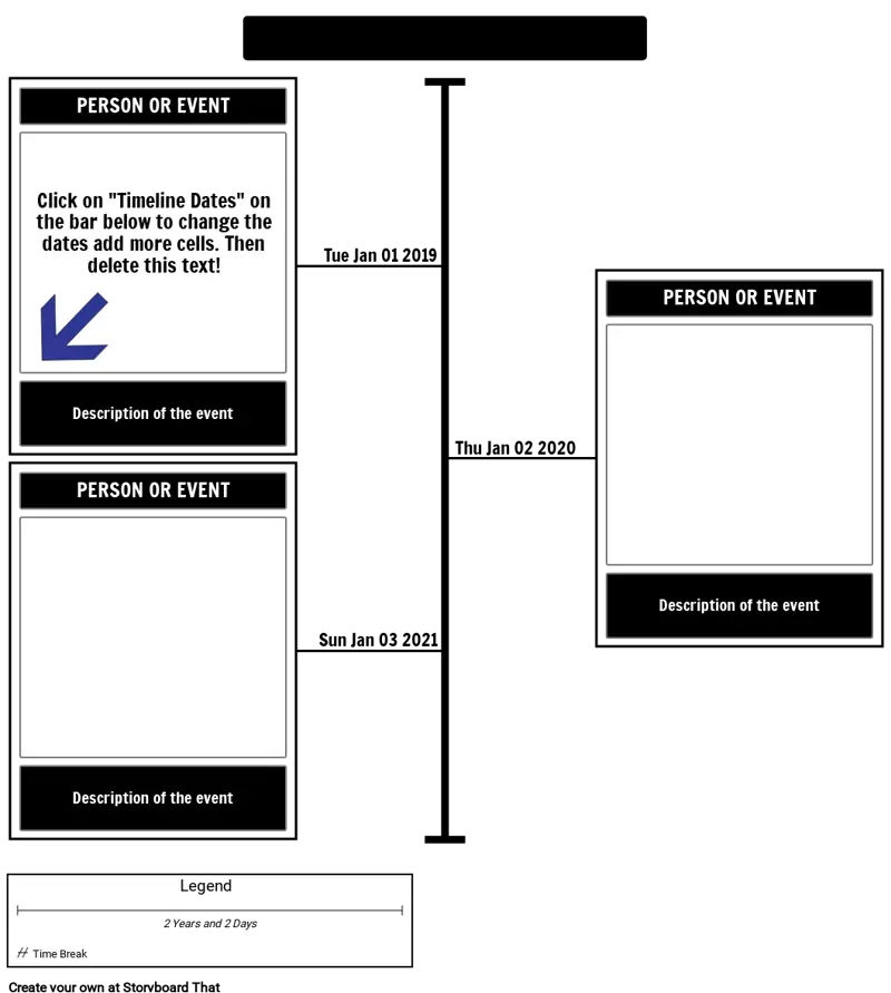Click on "Timeline Dates" on the bar below to change the dates add more cells. Then delete this text!