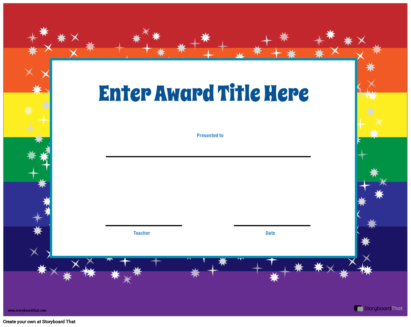 Modello di premi in classe a tema arcobaleno, stampabile e modificabile. Utilizzare per qualsiasi studente e qualsiasi argomento!