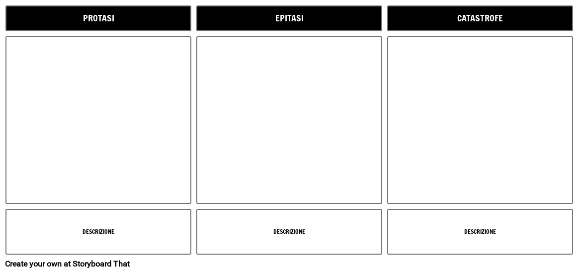 Modello di struttura a 3 atti | Chiedi agli studenti di identificare la protasi, l'epitasi e la catastrofe dell'opera e di rappresentarli usando Storyboard That.