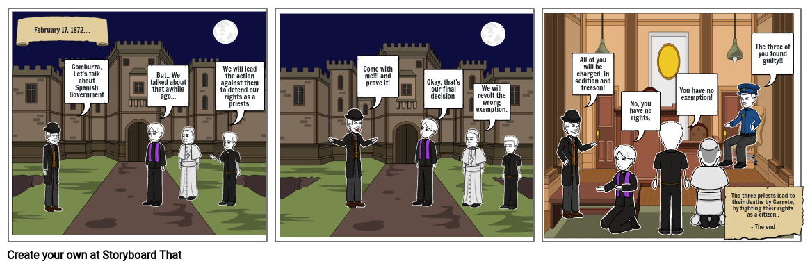 • The three priests lead to their deaths by Garrote, by fighting their rights as a citizen..- The end