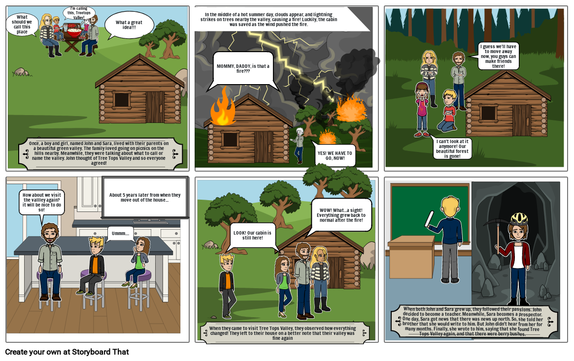 When both John and Sara grew up, they followed their passions. John decided to become a teacher. Meanwhile, Sara becomes a prospector. One day, Sara got news that there was news up north. So, she told her brother that she would write to him. But John didn't hear from her for many months. Finally, she wrote to him, saying that she found Tree Tops Valley again, and that there were berry bushes.