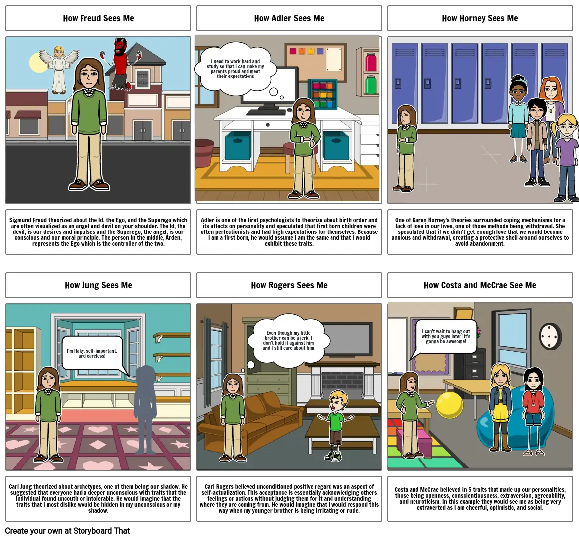 Costa and McCrae believed in 5 traits that made up our personalities, those being openness, conscientiousness, extraversion, agreeability, and neuroticism. In this example they would see me as being very extraverted as I am cheerful, optimistic, and social.