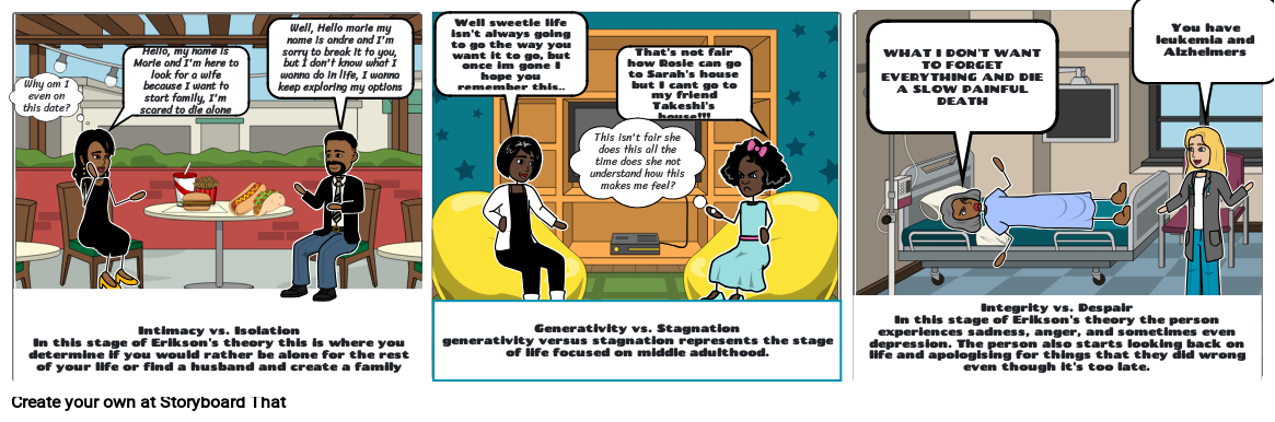 Integrity vs. DespairIn this stage of Erikson's theory the person experiences sadness, anger, and sometimes even depression. The person also starts looking back on life and apologising for things that they did wrong even though it's too late.