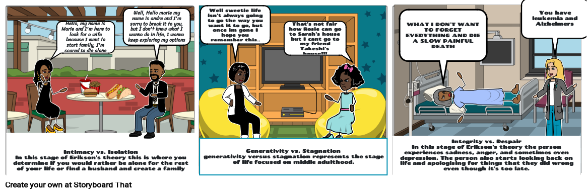Intimacy vs. IsolationIn this stage of Erikson's theory this is where you determine if you would rather be alone for the rest of your life or find a husband and create a family