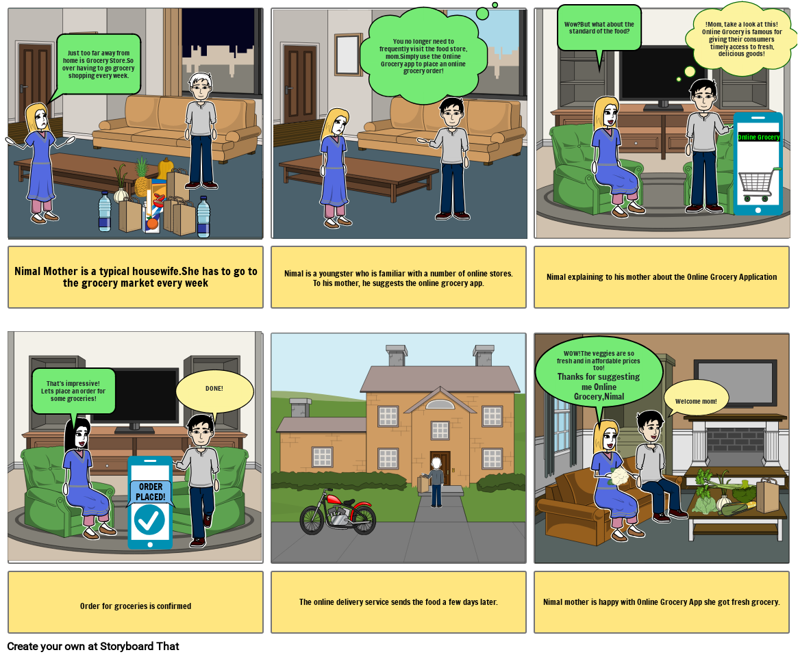 Nimal is a youngster who is familiar with a number of online stores.To his mother, he suggests the online grocery app.