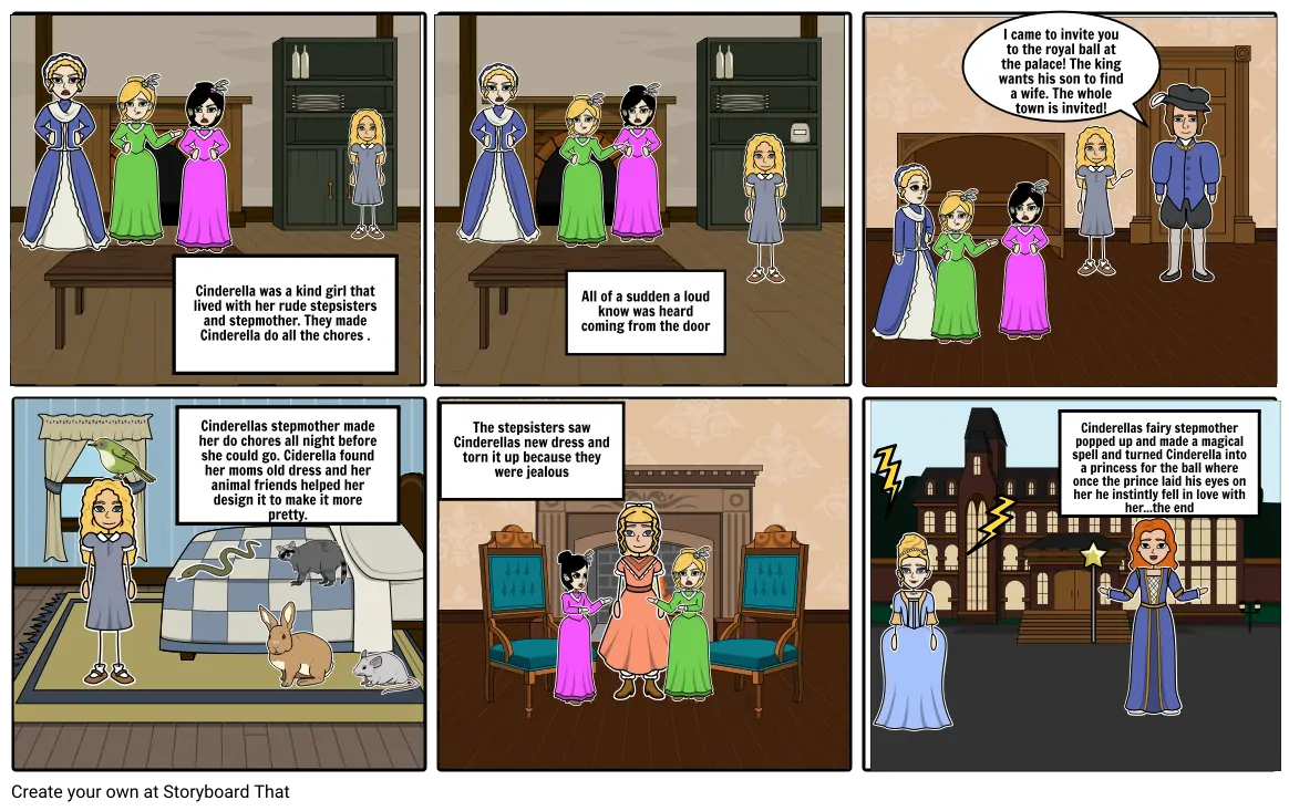 Cinderella was a kind girl that lived with her rude stepsisters and stepmother. They made Cinderella do all the chores .