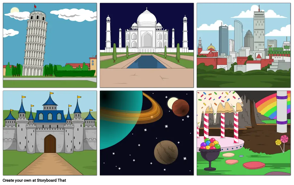 This example shows just a few of the vast array of smart scenes available in the Storyboard That creator! Modern day, historic, fantasy, and more!