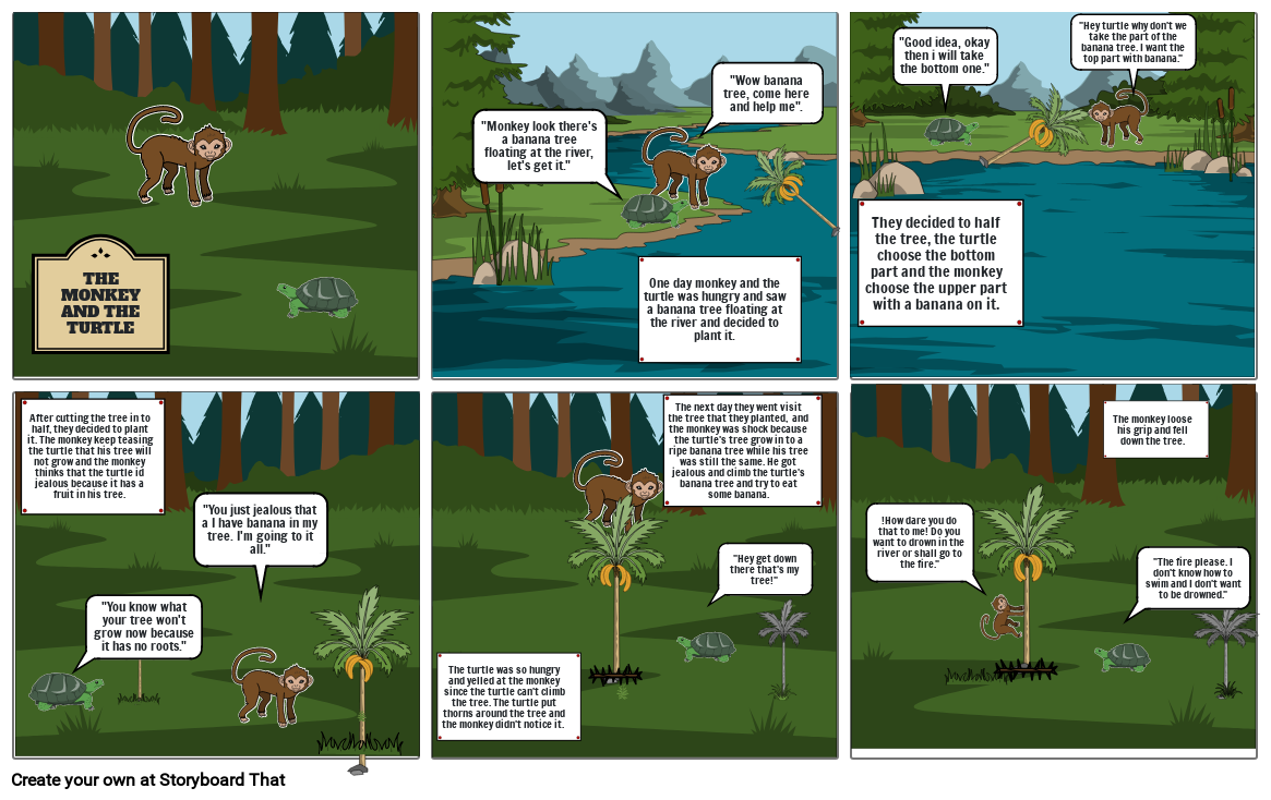One day monkey and the turtle was hungry and saw a banana tree floating at the river and decided to plant it.
