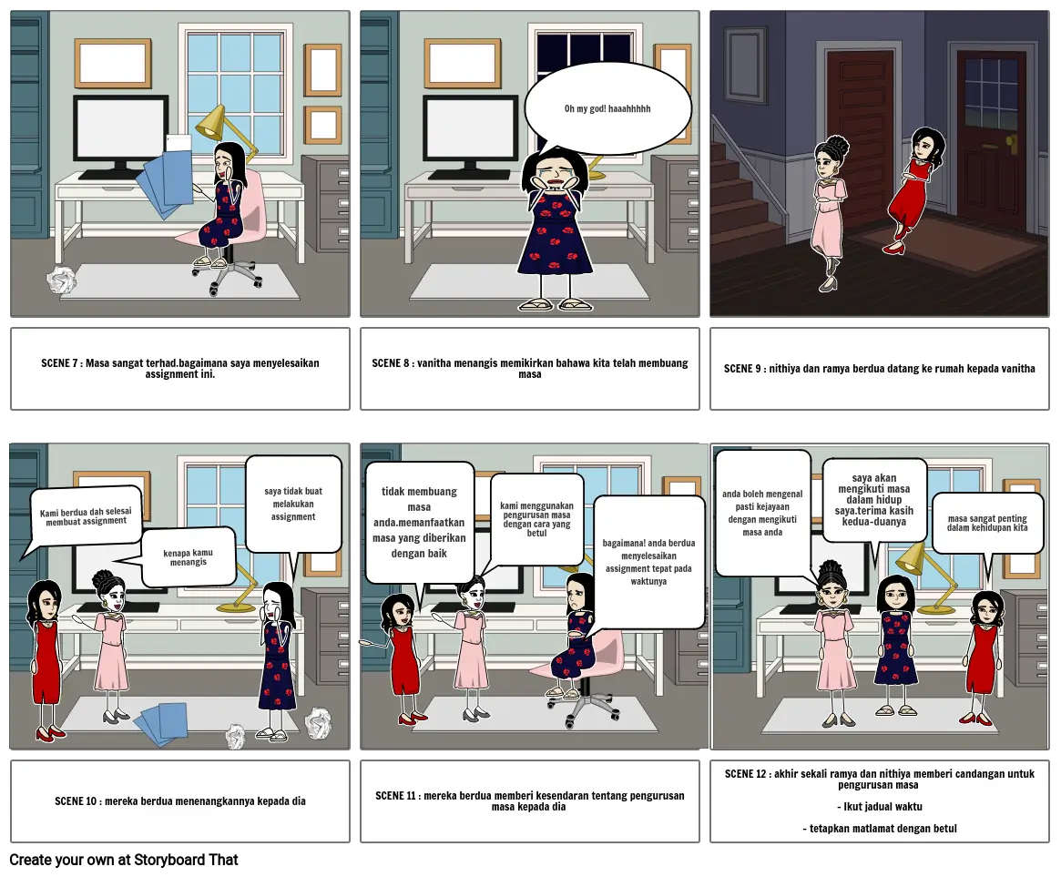 SCENE 12 : akhir sekali ramya dan nithiya memberi candangan untuk pengurusan masa - Ikut jadual waktu - tetapkan matlamat dengan betul