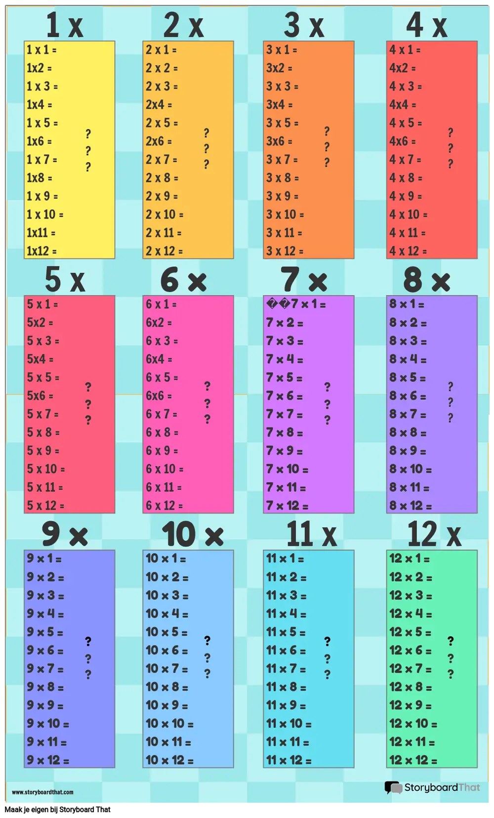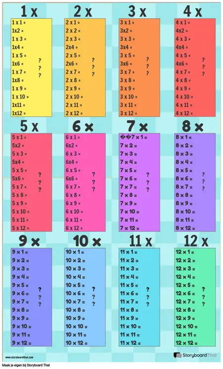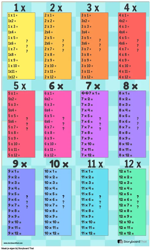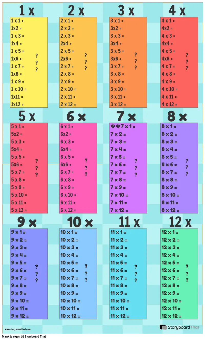 Vermenigvuldigingstabel Sjabloon 1