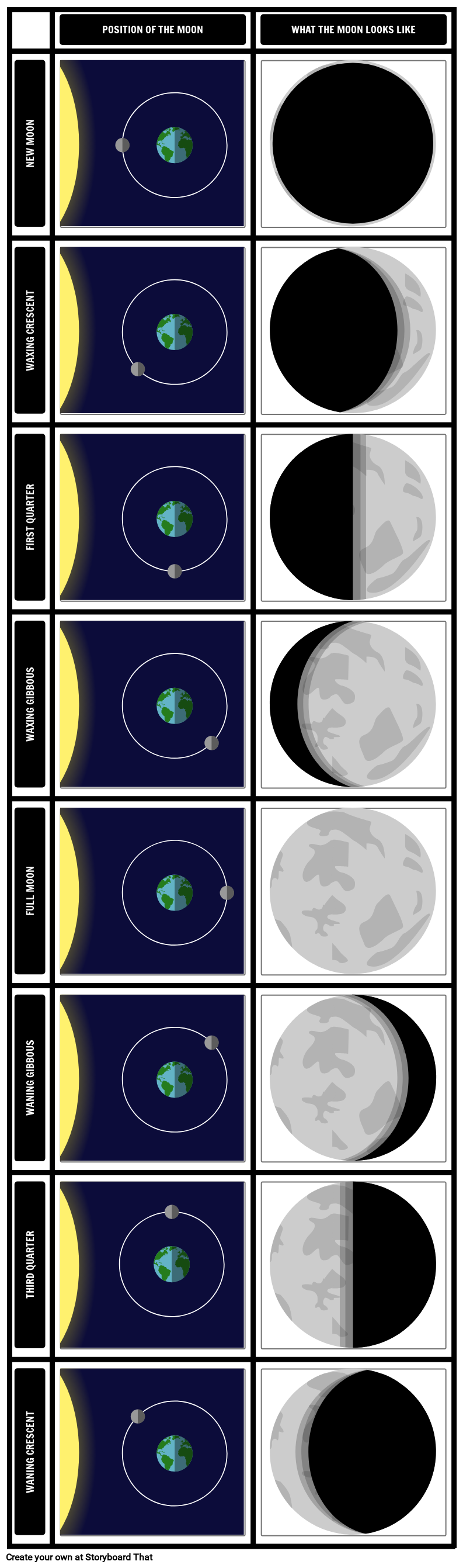 Phases of the Moon - Northern Hemisphere