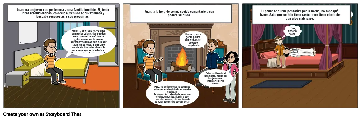 Papá, no entiendo que no podamos sufragar, es algo injusto en nuestra sociedad.Se que están tratando de hacer una sociedad más igualitaria, y que todos los varones sin que importe su valor adquisitivo puedan votar, sería un gran avance.