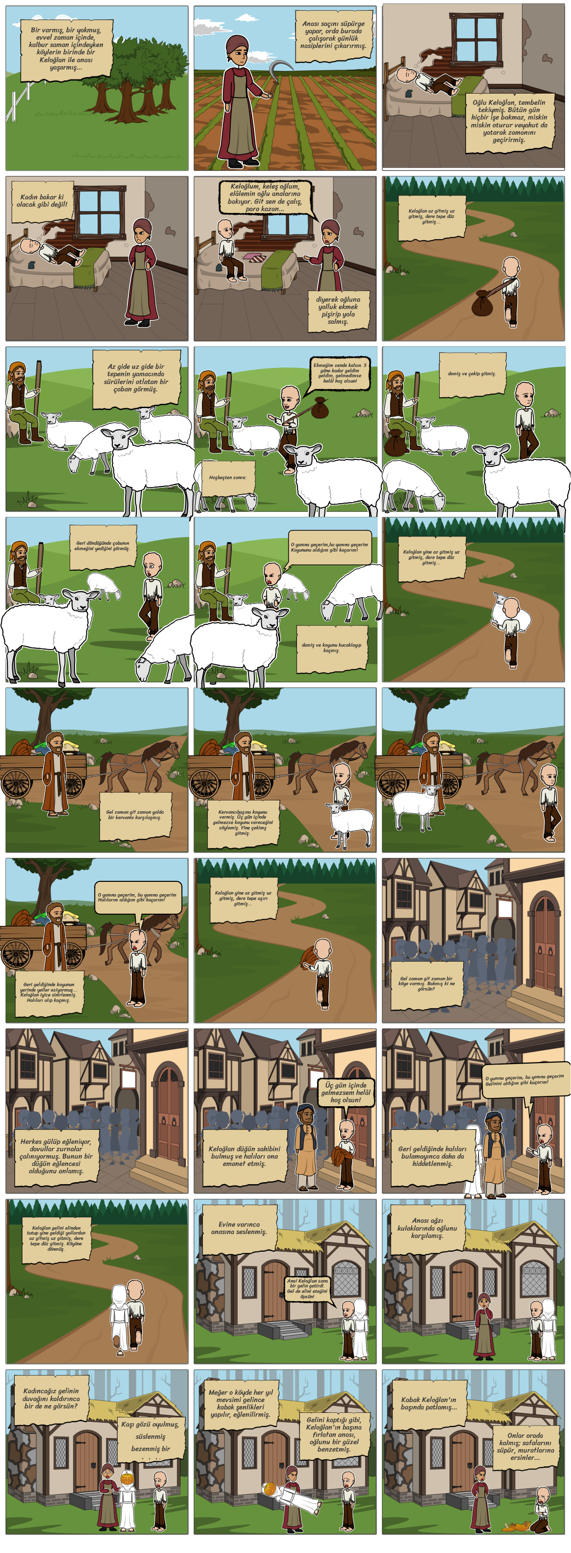 Bir varmış, bir yokmuş, evvel zaman içinde, kalbur saman içindeyken köylerin birinde bir Keloğlan ile anası yaşarmış...