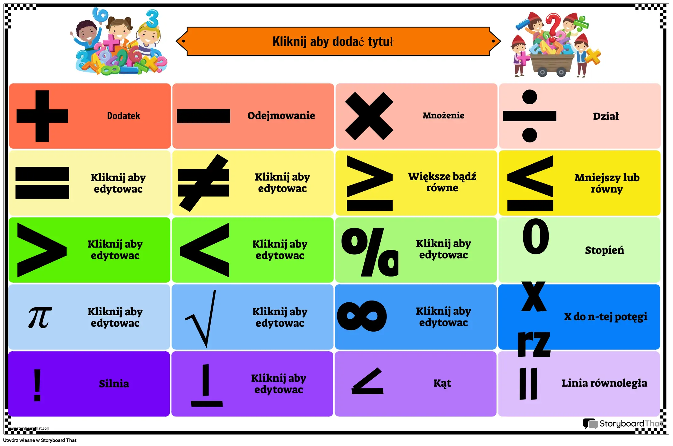 Plakat z Kolorowymi Symbolami Matematycznymi