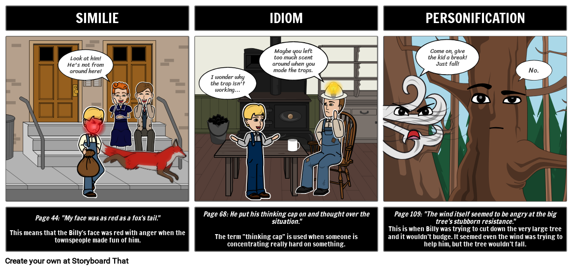 Учащиеся могут проиллюстрировать примеры образного языка в книге Уилсона Ролза «Где растет красный папоротник» и их значение.