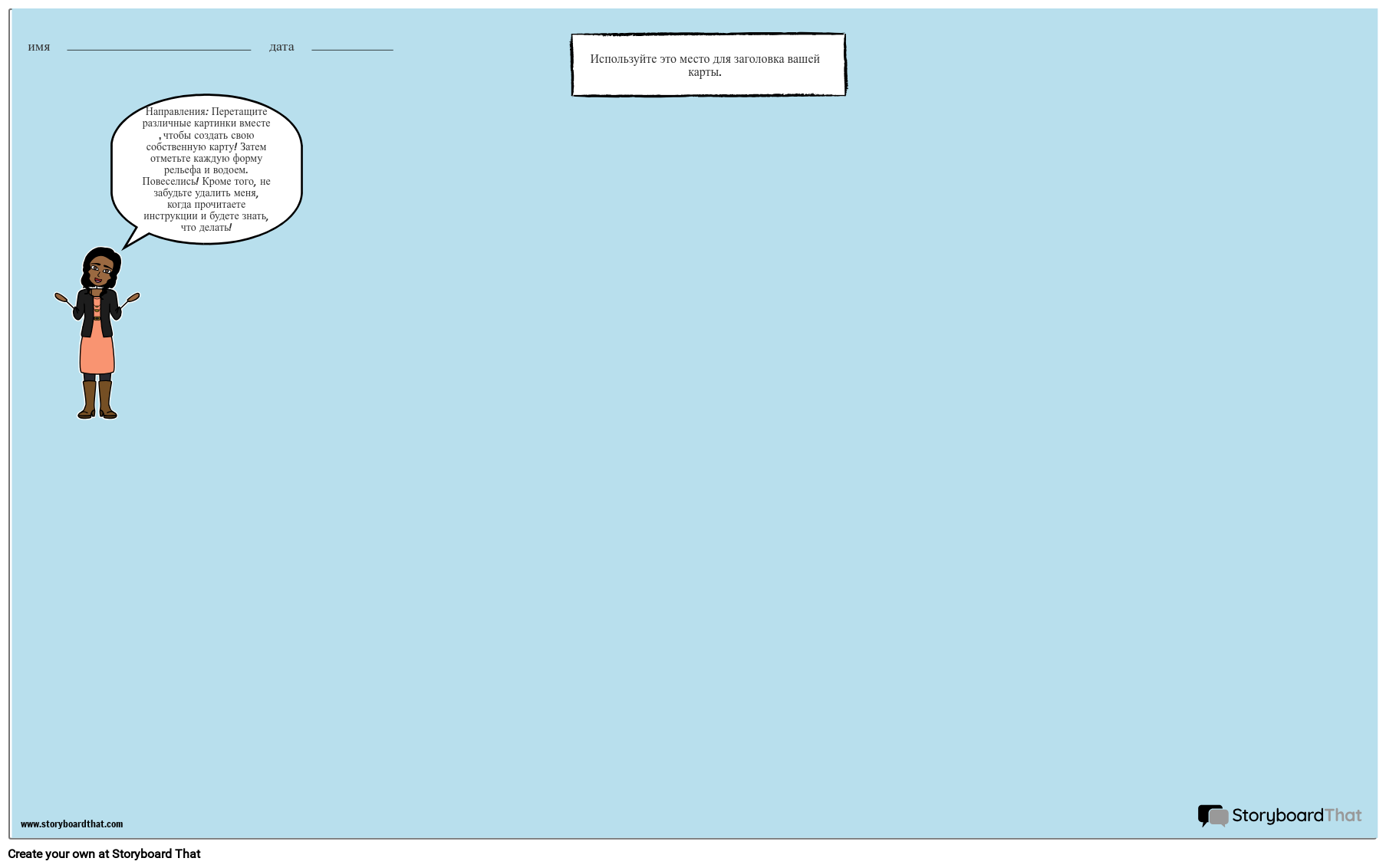 Направления: Перетащите различные картинки вместе , чтобы создать свою собственную карту! Затем отметьте каждую форму рельефа и водоем. Повеселись! Кроме того, не забудьте удалить меня, когда прочитаете инструкции и будете знать, что делать!