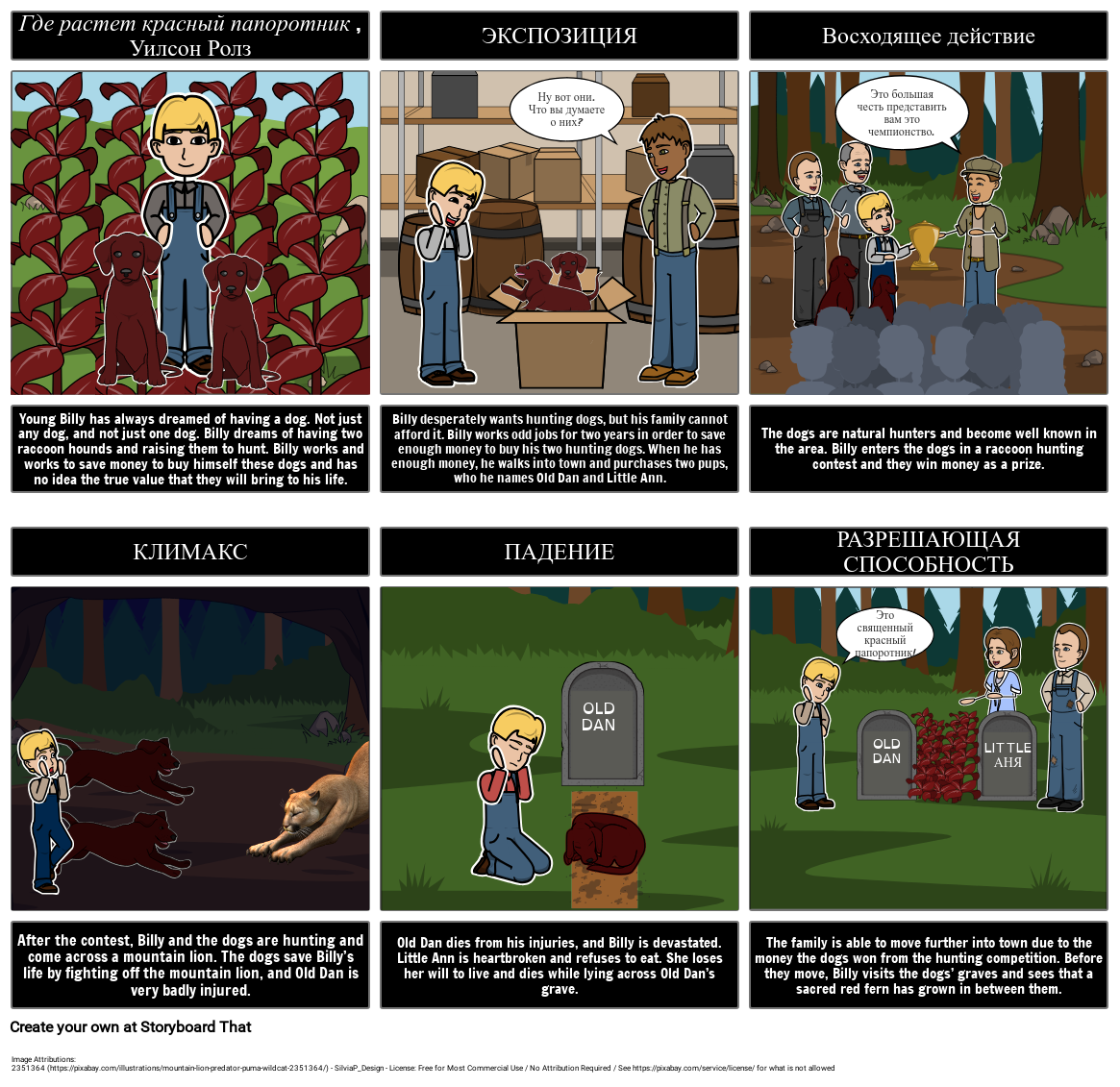 After the contest, Billy and the dogs are hunting and come across a mountain lion. The dogs save Billy’s life by fighting off the mountain lion, and Old Dan is very badly injured.