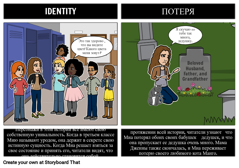 Персонажи в этой истории все имеют свою собственную уникальность. Когда в третьем классе Мию называют уродом, она держит в секрете свою истинную сущность. Когда Миа решает взяться за свое состояние и принять его, читатели видят, что она действительно становится собой.